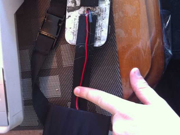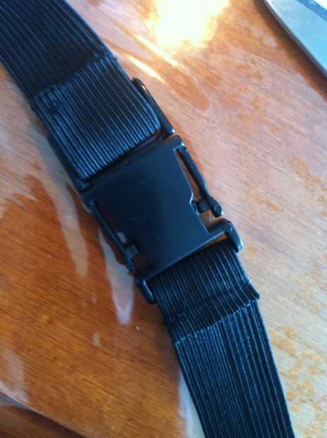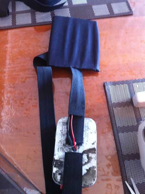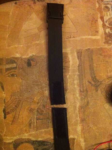 Coloque el compartimento en el cinturón con cola loca (sí pega muy bien).