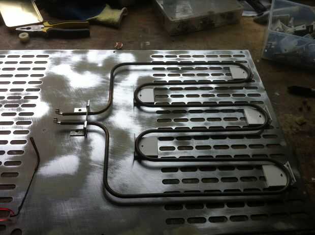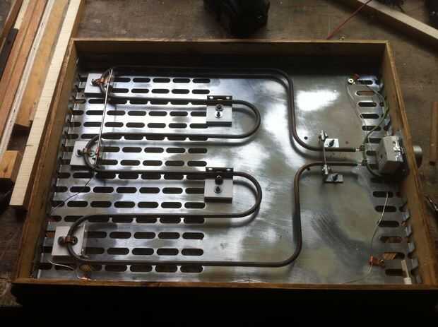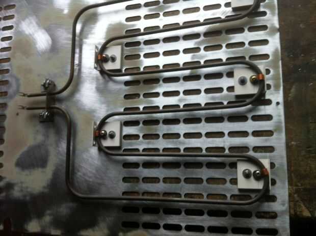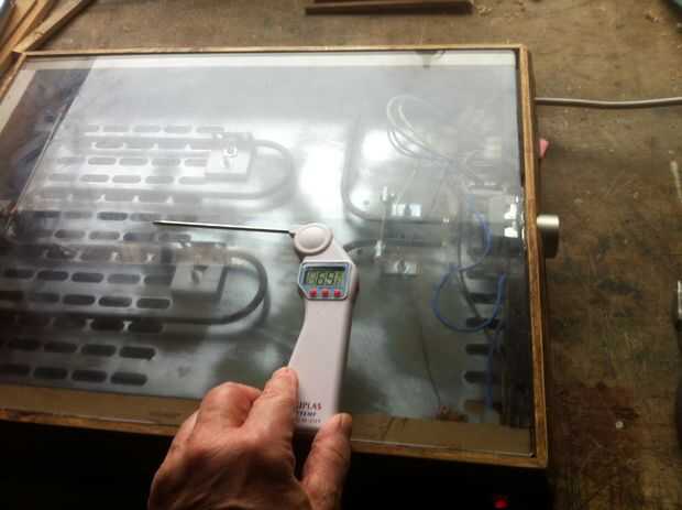 La electrónica principal para esta versión vino de un horno eléctrico desechado. La temperatura más baja que el elemento y su termostato de control fue diseñado para 50 grados C, que es de 122 grados f el. sin embargo, al localizar el sensor de termostato más cerca al elemento temperaturas más bajas son posibles dentro de gama.
