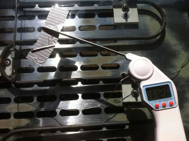 • Tenía el sensor del termostato en lugar justo por encima de la resistencia por líderes a través de dos ligeramente compensado clips. Esto permitió para la expansión y contracción mientras no dejarlo sonajero o desplazarse cuando se mueve el artículo terminado.