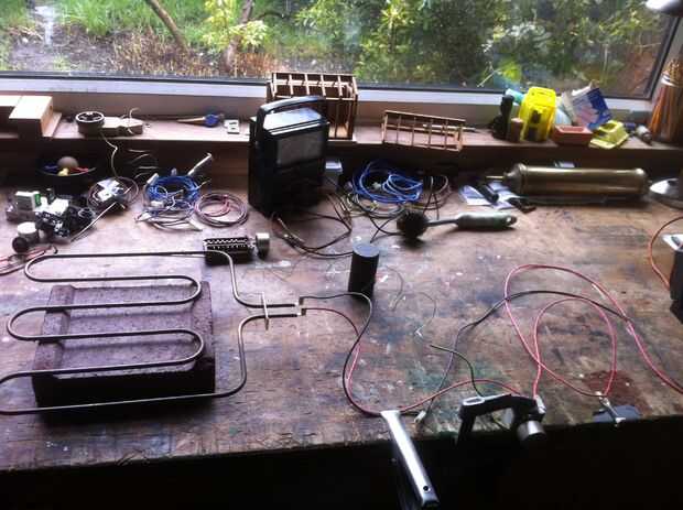 Hice varios montajes experimentales para decidir el diseño del elemento en relación con la superficie de trabajo. La consideración principal es cómo caliente y rapidez el diseño se presta a una unidad de trabajo factible. El esfuerzo de la mayoría fue en decidir lo que debe hacerse la superficie de trabajo de. Traté de policarbonato que fue muy bueno trabajar con pero necesitan demasiado tiempo al calor para arriba. También descubrí que para mantener la superficie de trabajo a 100-120 grados que debajo de la superficie de trabajo comenzó a derretir un poco. También policarbonato tendría que apoyarse en varios lugares para evitar que la flacidez cuando se calienta. Por lo que fue rechazado el Tajo barato y alegre.