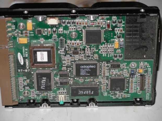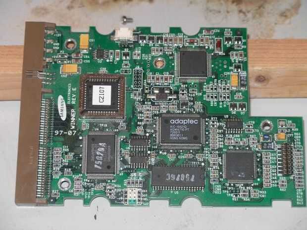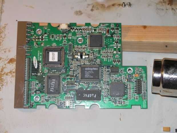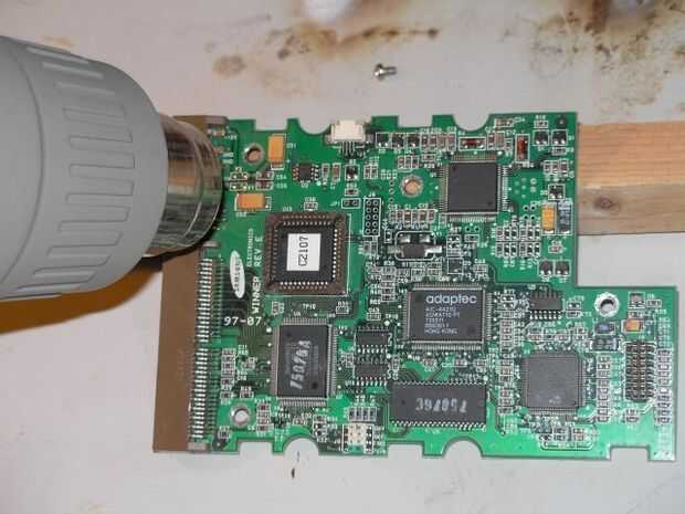 con una Heatgun quitar scavange piezas de PCB viejo o roto. Que usando un disco duro viejo como un ejemplo. Pueden salvar la mayoría cualquier surfacemount, BGA o incluso a través de partes del agujero utilizando este método.