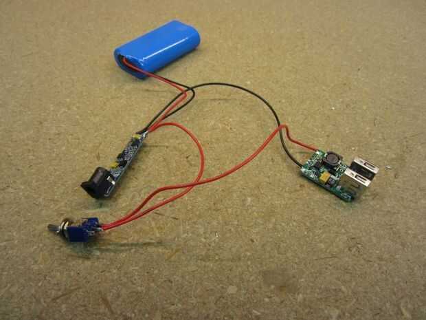Antes de continuar es mejor probar tu circuito. Coge un pequeño dispositivo USB y conéctelo. Si no se enciende inmediatamente, pruebe el interruptor de palanca.