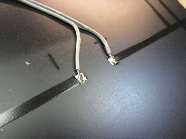 Pasado, uso pegamento para asegurarlo en su lugar. Levante el cable y poner pegamento por debajo y encima el cable. Utilice una tira de cinta presionado mientras el pegamento seca.