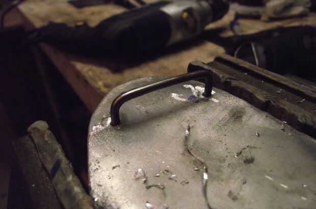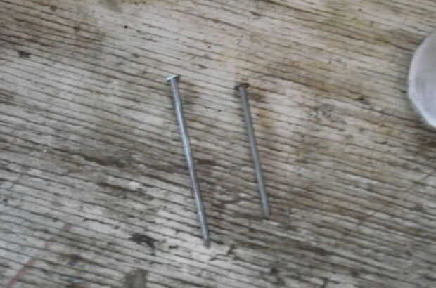ahora mida el ancho de la uña en su hebilla y taladre dos orificios que encajan en los extremos del clavo. Empuje el clavo y luego respetar o seta del clavo en ambos lados para que no volver a través y luego ligeramente doblarla encima para que no mueva.