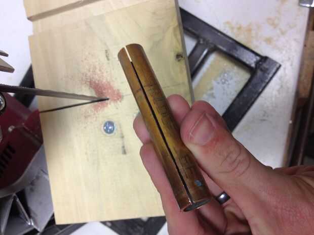 Mantenga la palanca para conseguirlo lo suficientemente abiertos como para martillo plano. Usé una variedad de métodos para ello. El mango en mi tornillo de banco tiene un pedazo redondo en cada extremo que era el diámetro perfecto para ayudar a difundir esto hacia fuera. Sólo manejé el tubo en el mango que se separó la apertura más amplia. Una vez lo suficientemente ancha como caber sobre una de las mordazas de la prensa, martilló un poco y se un poco. Martillado más y dado vuelta. Repita hasta que usted termina con una placa plana.