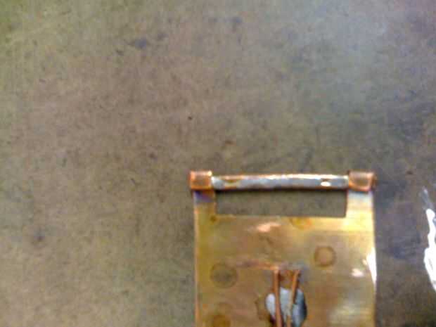 4) apagar el soplete y aplique soldadura junto el alambre centrado. La soldadura debe hacer buen contacto con el cable y la placa trasera.