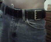 Tiene que usar el cinturón de una cierta manera, llevar este cinturón. Colóquese el cinturón como lo tengo abajo. Para poner la hebilla del cinturón, tienes que poner el primer lazo de cable en la correa antes de ponerlo a través de la presilla derecha del medio del pantalón. Después de poner a través de la presilla derecha, pones a través de otro lazo de alambre. Luego, termine poniendo su cinturón en la manera que se muestra a continuación.