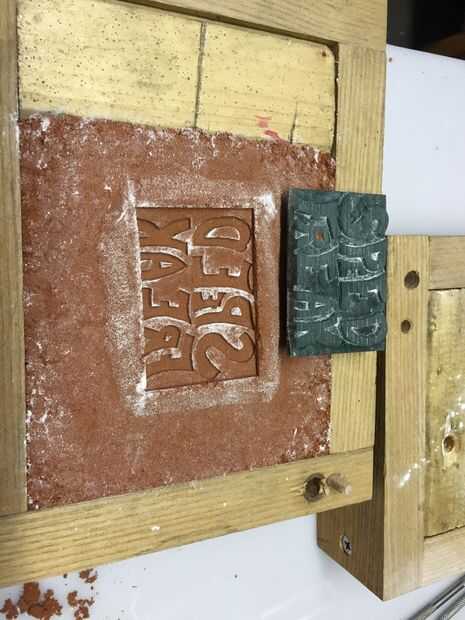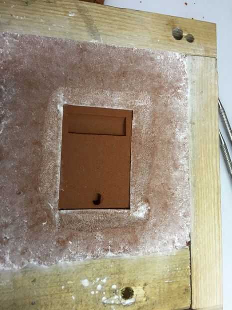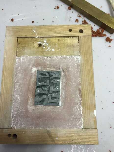 Llené la fama con arena de fundición (arena de aceite), comprime bien y aplica talco para separar los dos cuadros más adelante.