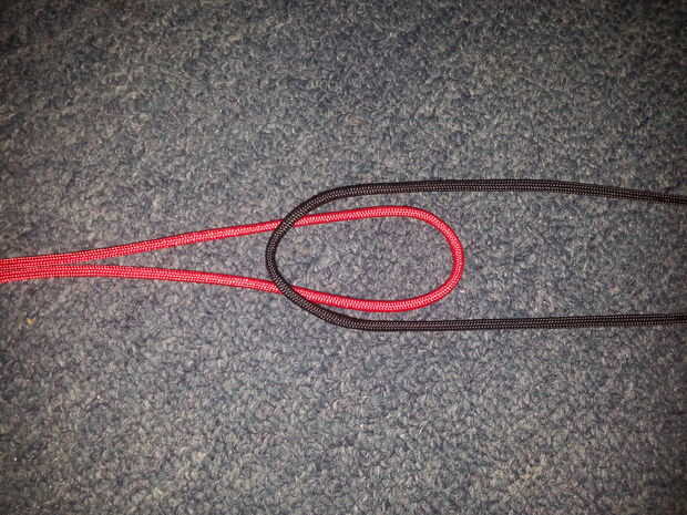 El centro de una cuerda, luego la pongo. Encontrar el centro del segundo color y colóquela sobre el primero.