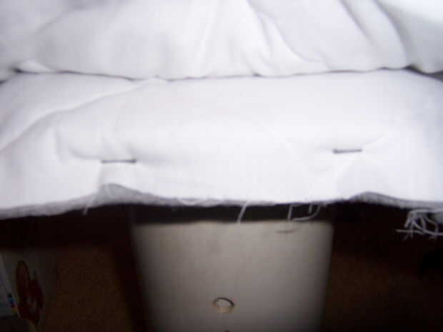 primero la grapa al final del relleno al lado de la tapa del taburete