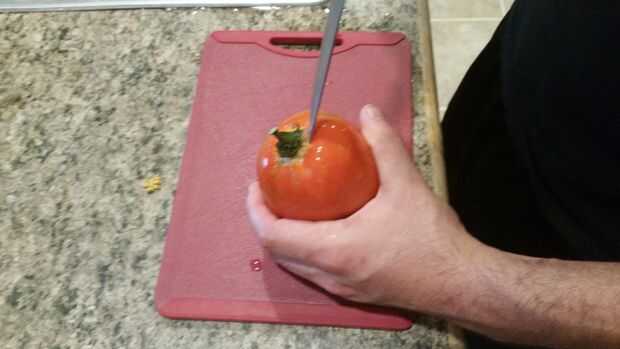 Elegir que tomates que desea utilizar. Idealmente usar un tomate de salsa que producirá más jugo de pulpa gruesa que se reducen más fácil debido a menos agua. Sin embargo hará cualquier tomate. Utilizamos tomates frescos de nuestra huerta, como sabemos son orgánico y libres de pesticidas.