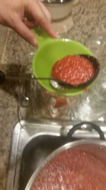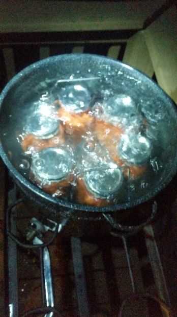 Agregar una banda y la tapa de la jarra y hervir en una olla de baño de agua para la cantidad necesaria de tiempo de la elevación del nivel del mar. En mi zona del estado de Ohio es 20 minutos.