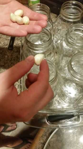 Después de agregar el agente conservante agregar 1 diente de ajo y llene los frascos dejando unos 3/4 de pulgada de espacio de cabeza.