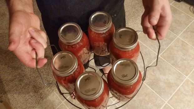 Retire los frascos de la olla y comprobar para un sellado adecuado. Si usted puede empujar la tapa hacia abajo no sello. Añadir una nueva banda y la tapa y volver a hervir.