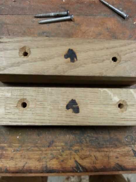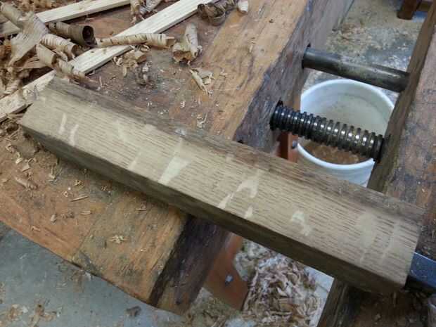 En primer lugar, necesitaba tallar una pieza cuadrada de la viga de roble, que no era cuadrada en todos. Después rápidamente afilar mis herramientas, me fui en ella. Con un serrucho afilado, analizó el rayo en pedacitos más pequeños, que se asemejó más de cerca a las dimensiones finales. Después de eso, era hora de cepillado. Usé un suave stanley n º 3 para establecer la superficie de referencia. Después de eso, pude plano los cuatro lados cuadrados hace referencia a partir de ahí. Con un banco de gancho y una espiga Sierra, Cruz corte la pieza a su longitud final y usa mi viejo tiro a tablero para recortar los bordes para arriba un poco. Dos agujeros perforados y los avellanados. Los agujeros son un poco más grandes que los tornillos, esto permite un poco de ajuste. Como detalle final, añadí mi marca o marca del fabricante.