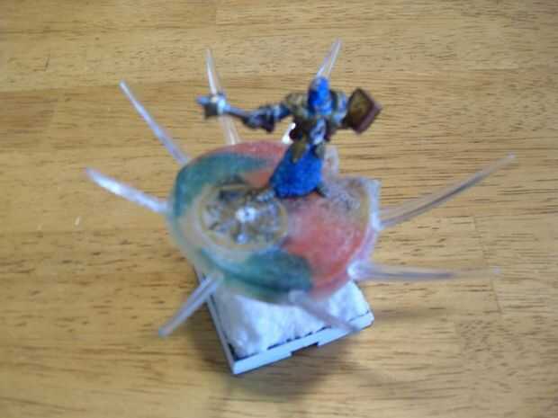 Éste es mi Señor hechicero de Tzeentch en disco, revisado con agregado 3 LED, un motor, un micro (PIC) y la pequeña batería.