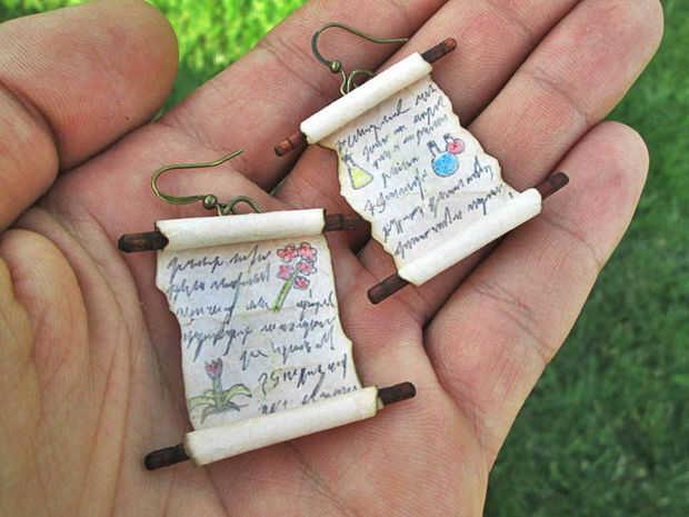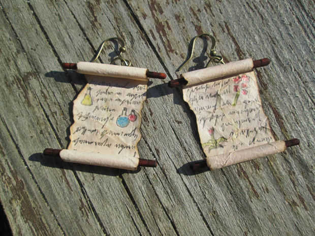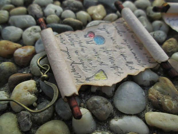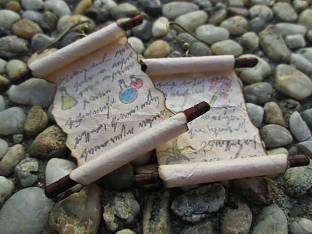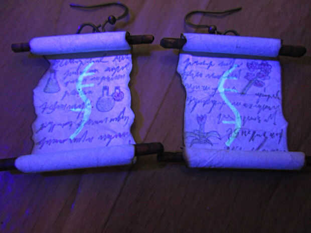 Si te gusta fantasía, magia y cosas así... entonces este tutorial es para usted. Puede hacer estos pendientes de desplazamiento del hechizo de pura fantasía y añadir un mensaje oculto que se revela sólo por una luz ultravioleta. Que significa que tendrá que ir a una discoteca, porque generalmente hay muchas luces de UV. Este mensaje puede ser cualquier cosa - su símbolo preferido, un poeta, parte de un libro, el lema de vida, el nombre de tu amor o incluso un mapa del tesoro. Es todo a usted.