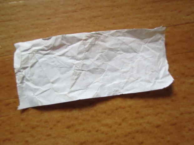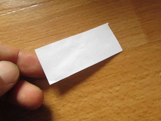 Cortar una pieza de 3 x 7 cm (1.18x2.75 pulgadas). He utilizado papel de la impresora ordinaria, pero se puede utilizar papel reciclado en lugar de otro. Y podría ser incluso mejor opción porque usted no lo va a necesitar color y dibujo será más fácil así.