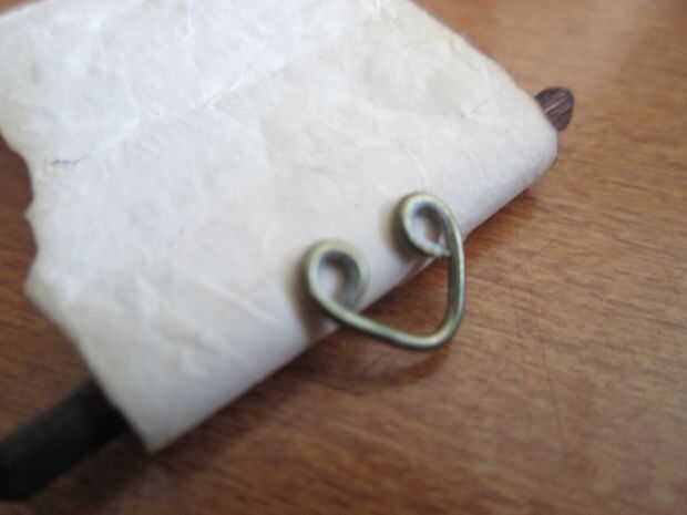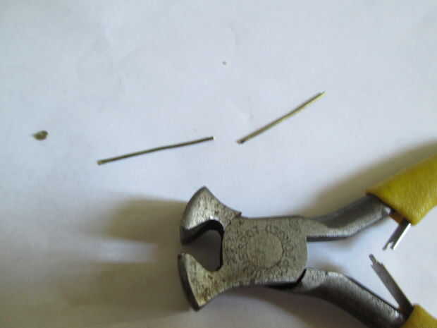 Tiempo de agregar ganchos. He iniciado con el alambre de latòn largo de 5 centímetros (1,96 pulgadas) y corte en dos piezas - 2, 5cm (0,98 pulgadas) largo cada una.
