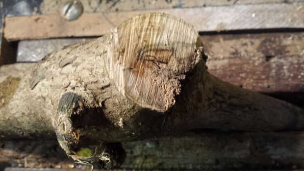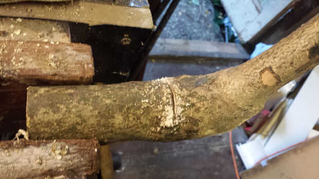 Holly es muy densa y de grano fino (tradicionalmente es una de las maderas utilizadas para el grabado en madera). Esto es útil ya que puede ser muy finamente talladas y moldeadas sin partir. La áspera rama necesita ser reformado considerablemente abajo. El trozo de rama que componen la cabeza perdería cerca de la mitad es la masa de esta manera.