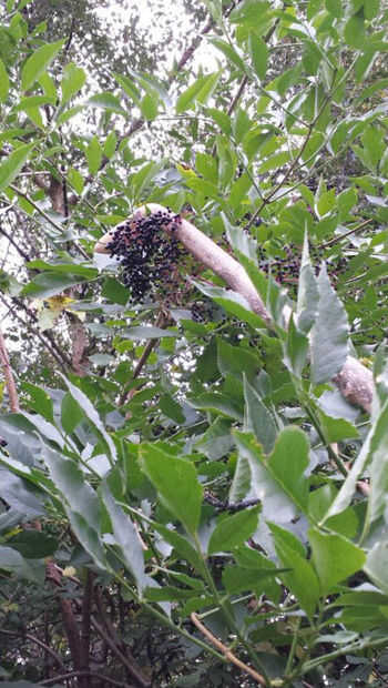 - tirando hacia abajo ramas cargados de bayas cuando encuentro cosas como bayas de saúco