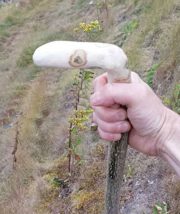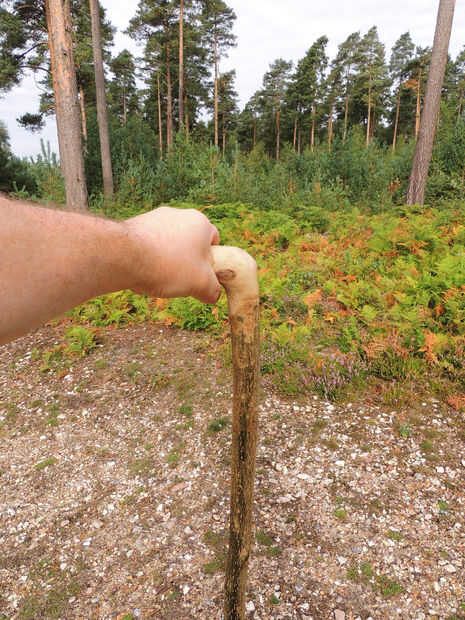 Aquí está el palo terminado. Conserva el precioso color de madera de acebo y un ojo entrañable de una rama de tiro. Aquí algunas fotos del palo cortado fresco y personal, caminar pegarlo se convirtió y algunas cosas hace más agradable en paseos...