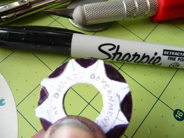 Cortar la corona de papel y póngala sobre la lavadora, esta es su última oportunidad para hacer ajustes, a menos que desee fijar la corona si no gire a la derecha, o hacerlo de nuevo. Su real verdaderamente suya. Yo sólo quería seguir adelante, así que lo que tenía. Recorte con mi cuchillo xacto fiel.