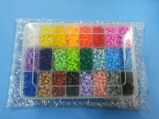 Tome un gancho de pendiente y granos coloreados a éste.  Puede utilizar algunas perlas para que el señuelo atractivo o un grano - depende de usted.  Cada señuelo será único!  Usar los alicates para doblar el alambre por lo que las cuentas no salen.