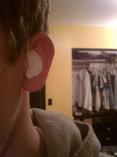 Después de haber curado su audífono (una hora u hora y media debe ser lo suficientemente bueno para que puede sacarlos hacia fuera, pero te cura completamente en 24-36), usted puede tomar hacia fuera tirando hacia atrás de la oreja. Te sentirás algo de tensión como el Sugru libera tu piel, pero unos cuantos tirones y debe saltar derecha. Hacer todo lo posible para no sacar los audífonos tirando del cable o palanca hacia fuera con el dedo, ya que no están completamente curados en este punto y deformarán tan ligeramente si se pone demasiada presión sobre ellos. Esto dará lugar a molestias para usos futuros, y dolor de oído es... bueno, doloroso, así que ten cuidado.