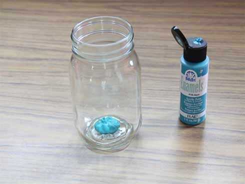 Lave y limpie la jarra y espere para secarla. Vierta un poco color de la pintura en el tarro.
