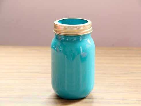 Corte un orificio en la tapa, la tapa ocultar la torcedura en el cuello del frasco y hacer la jarra más hermosa.
