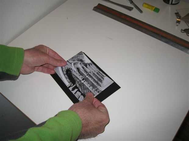 En este paso utilizar cualquier pegamento prefiere montar la foto de 4 x 6 en la cartulina de 5 x 7. Un calefactorio funciona bien y es más barato que spraymount.