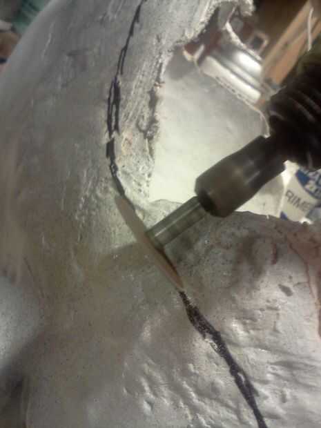 Usando una Dremel con discos de corte recortan la máscara a lo largo de esta línea de corte dejando una línea limpia agradable, que hizo la diapositiva máscara en mucho más fácil.