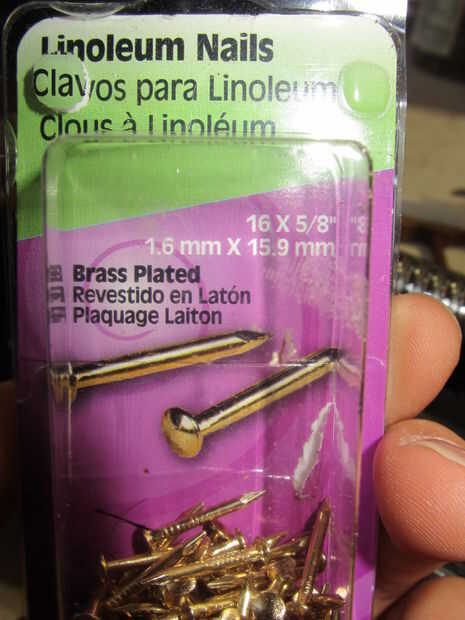 -10 1/2 "(o menos) clavos de latón - encontré un paquete de 50 en un ACE Hardware.
