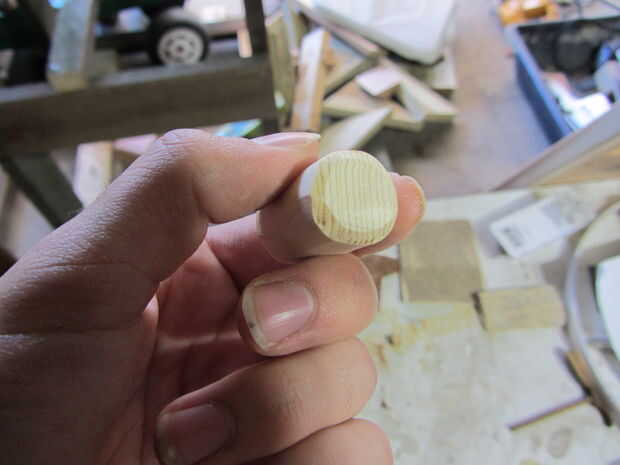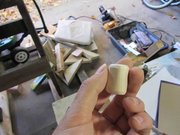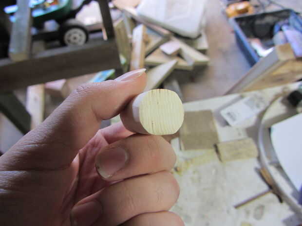Para mí, el siguiente paso fue a la arena a un cilindro de 3/4". Si empezaste con los pasadores, buen trabajo: tomar este tiempo para usted mismo palmaditas en la espalda para ser sensible. Si no está utilizando un pasador de la cola, se debe lijar hasta ~ 3/8. Encontrar para comenzar con un pequeño trozo de madera si se puede (EG. el mango de una cuchara de madera).