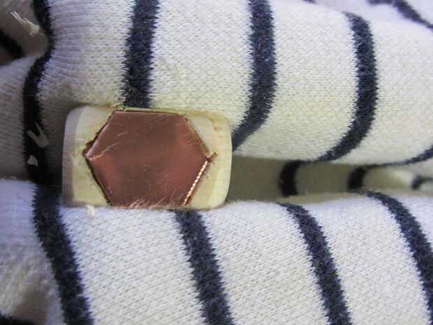 Descansando su cincel en el grove e inclinada hacia adentro hacia la zona que se va a quitar, comienzan a cincel a la madera. Después de haber eliminado una capa de madera, comparar la pieza de cobre en el recuadro para ver si es lo suficientemente grande y suficientemente profunda. Si usted debe ir más profundo, asegúrese de grove el borde de su área de cincel una vez más antes de reanudar la extracción de madera. De lo contrario se cincele el borde de la pieza.
