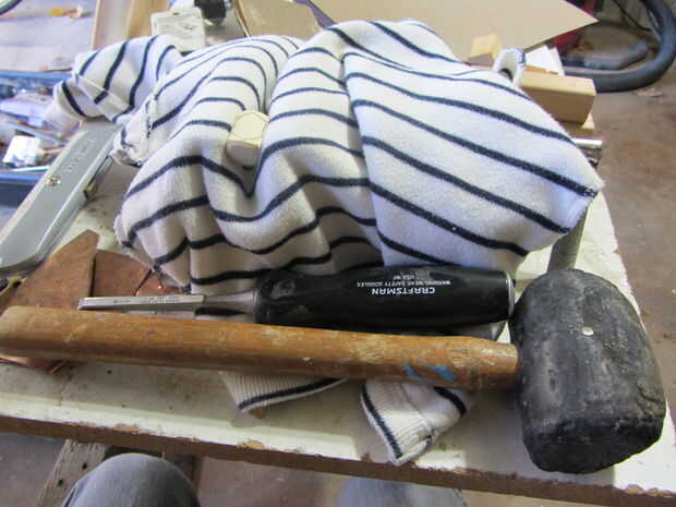 Cuando la línea se corta, descansar el cincel en la ranura con el lado inclinado hacia afuera (lado plano en) y le dan un toque o dos con el mazo. Intenta profundizar en la frontera y darte algo para delimitar el área que Ud. esta por deshacerse de lo que permanece.