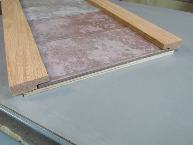 Consejo: Corte de rebajos se refiere a un paso del corte en el borde de una tabla. Generalmente el corte de rebajos se utiliza para la creación de trabajo carpinteria en madera, pero para este proyecto se utilizará para mantener las baldosas en su lugar.
