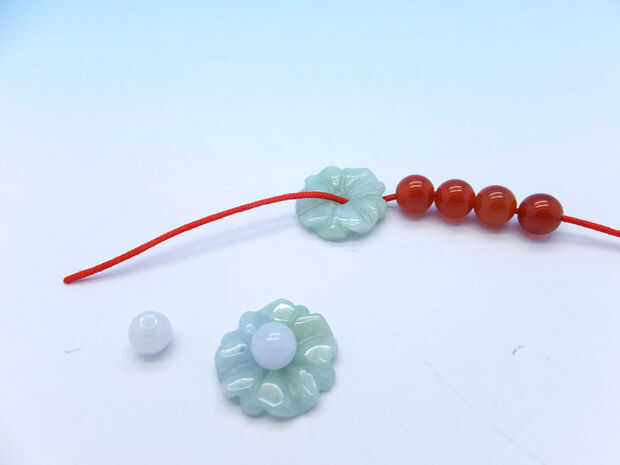 Hecho a mano rojo ágata y jadeita jade pulsera "Hada de la flor" de cuentas DIY03 (1 / 6 paso)