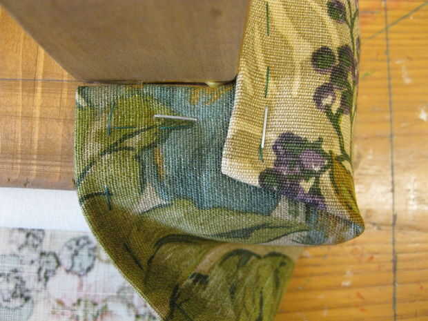 siguiente tire el borde exterior de la tela hacia arriba y sobre la sección con grapas.