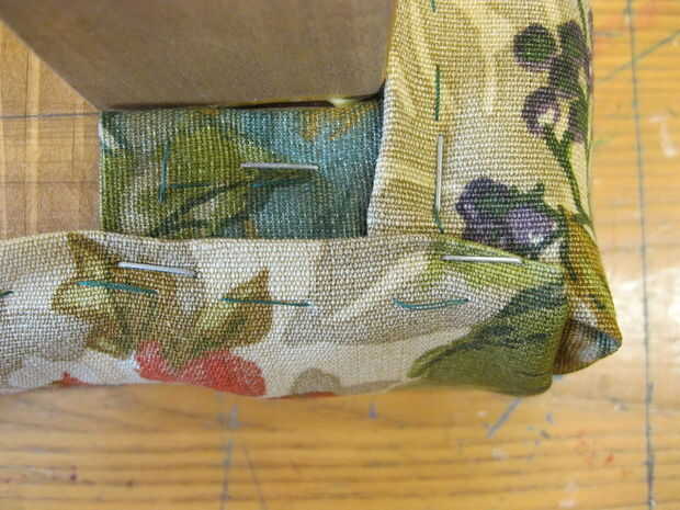ahora doblar ese borde final y grapas de la esquina. Repetir este proceso en las otras esquinas y acabar fijándolo con grapas alrededor del borde.