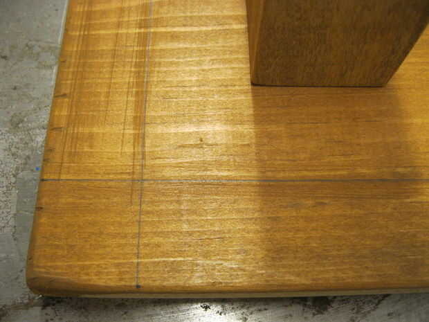 Tirón de la madera y la marca de una frontera de pulgada en el lado manchado de la madera