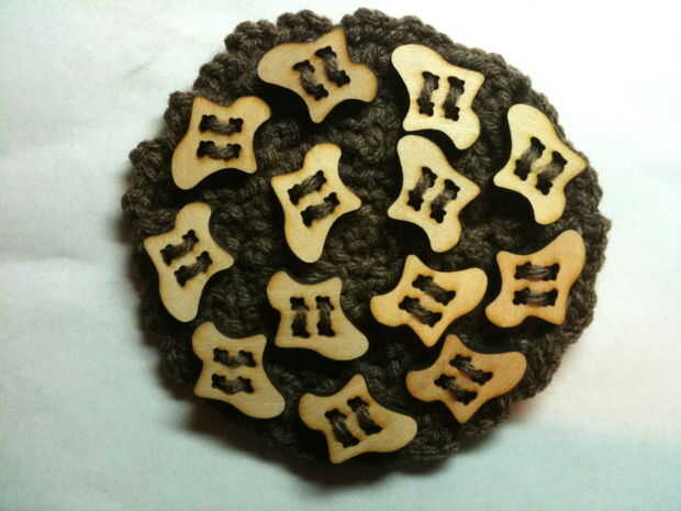 Vio las piezas de madera en la parte superior la forma de ganchillo.