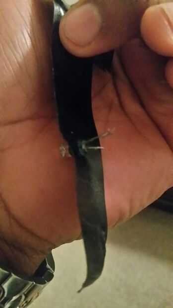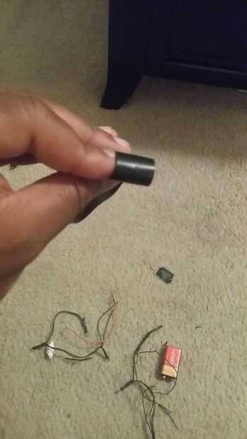 Arrancar otro pedazo de cinta negra. Doblar un extremo como la foto 1, tomar un par de tijeras y hacer una pequeña incisión en la parte no-pegajoso. Se trata de donde insertar los bulbos del LED. Los polos negativo y positivo deben estar en el lado pegajoso.