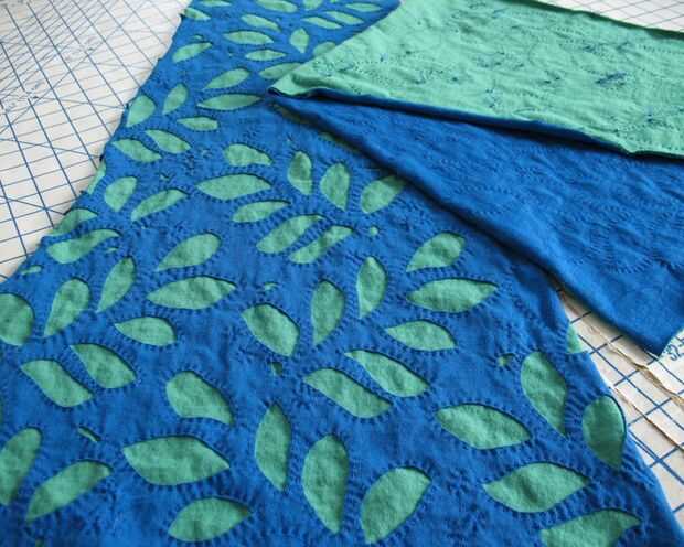 Empecé con una punta de fieltro verde. Hubo algunos arrastre a través de la tela, pero nada terrible. Sin embargo, no me gusto la forma el color se veía en la camiseta azul.