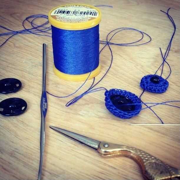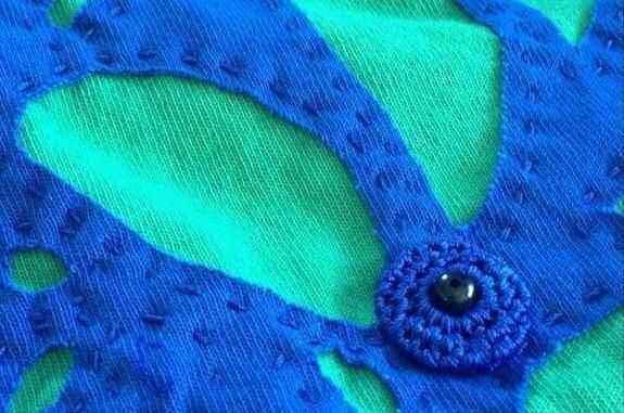 En cuanto a los cierres que he utilizado para mi chaqueta de Alabama Chanin... encaje crochet cubierto!