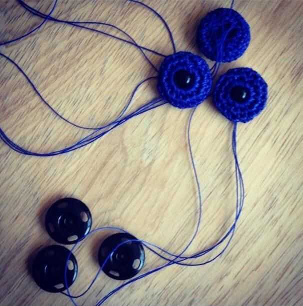 No siguió las instrucciones dadas, pero sólo jugó alrededor con un gancho de crochet y una pequeña longitud de hilo hasta que estaba contento con el resultado. He cubierto broches con tela en el pasado, pero creo que prefiero este look.