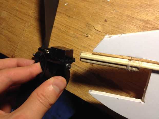 Para lograr esto, pegué varias piezas cortas de la tubería de diámetro más pequeño que el puntal principal. Envuelven en hilo antes pegado para la fuerza adicional.