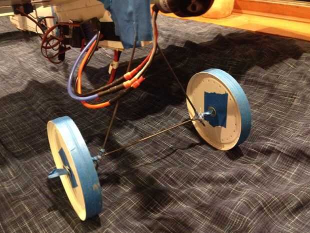 Virar el eje de la cinta de enmascarar cambios compatible con. Asegurarse de que unido a las ruedas que la hélice está en leadt 2.5 pulgadas de la tierra y el plano.