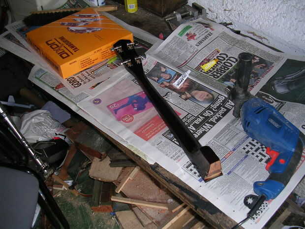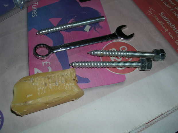 I marcado y había perforado el cuello y usa cera de abejas en las roscas de tornillo para hacer cosas en la suave. bloqueado 2 tuercas en la rosca de la máquina por lo que he podido apretar que los pernos en el cuello.